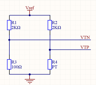 Method 1: (PT100) Reference resistor R3 = 100Ω. This method cannot measure temperatures below zero. The measurement temperature range of Method 1 is >= 0℃.