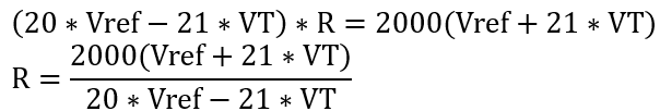 Substitute the values: R1 = R2 = 2000Ω; R3 = 100Ω; R4 = R;