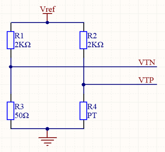 Method 2: (PT100) Reference resistor R3 = 50Ω, measuring resistance offset downwards by 50 ohms, measuring temperature range >=-125℃.