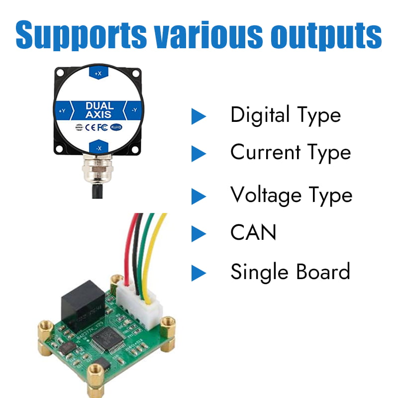 This product adopts non-contact measurement of raw materials and can output the current posture inclination angle in real time. It is easy to use and does not require retrieving the installation of two surfaces with relative changes. It is an ideal choice for industrial automation control and platform posture measurement. It has strong resistance to external electromagnetic interference and can adapt to long-term work in harsh industrial environments.