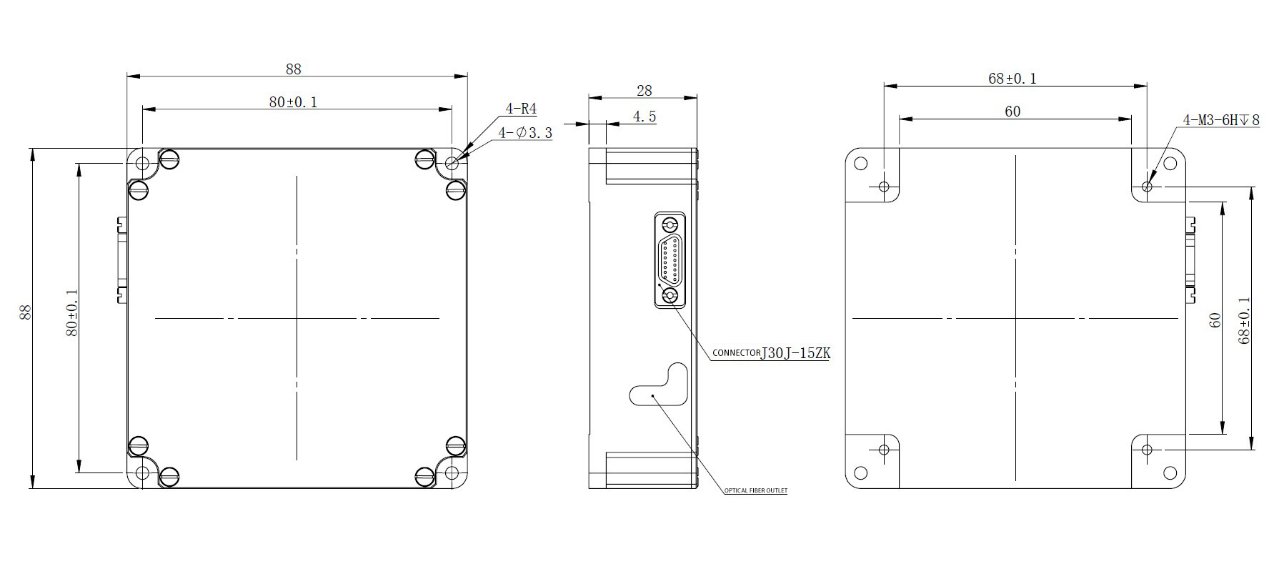 Схема внешнего вида и установки волоконно-оптического гироскопа G-F3G90.