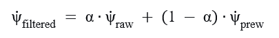 When driving at low speeds, the speed difference between the left and right wheels is very small. If the resolution of the wheel speed pulse counter is insufficient, it will cause the calculated heading angle change rate to jump severely. Low pass filtering is required to remove high-frequency noise using first-order low-pass filtering.