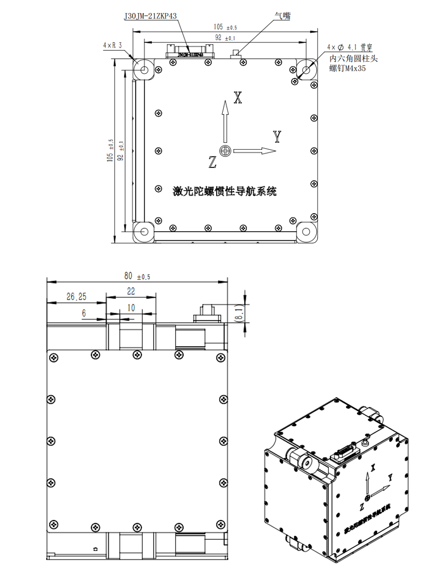 The core inertial sensor of the IR1000 laser gyro inertial navigation system is composed of a three-axis 30-type laser gyro combined with a three-axis quartz flexible accelerometer. It mainly includes: secondary power supply, navigation computer, current-frequency conversion circuit, gyro control board, gyroscope, accelerometer, and mechanical structure. Its main functions are: