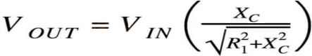 The RC filter uses an equivalent structure, replacing R2 with a capacitor. First, we replace R2 with the capacitive reactance (XC) of the capacitor, obtaining the output expression of the RC voltage divider as shown in Figure 3: